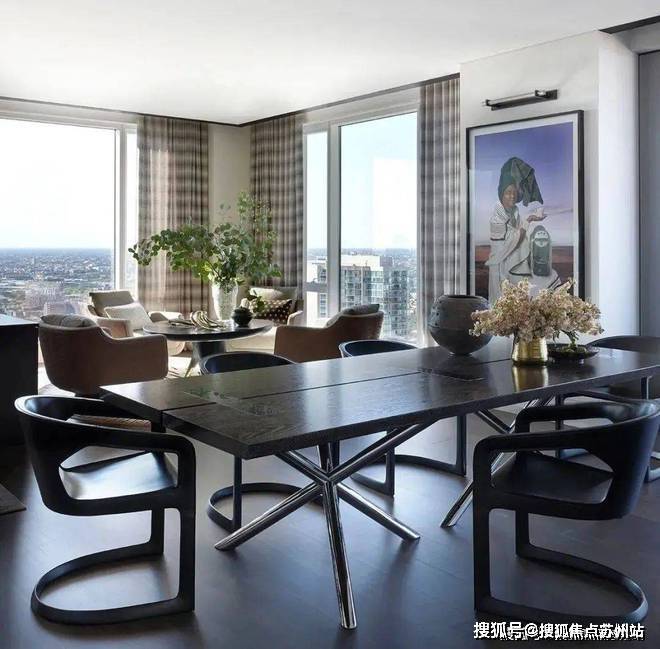 在宽敞的落地窗边安放休闲餐桌椅,俯瞰整个城市美丽景色的同时也让心情得到洗涤。