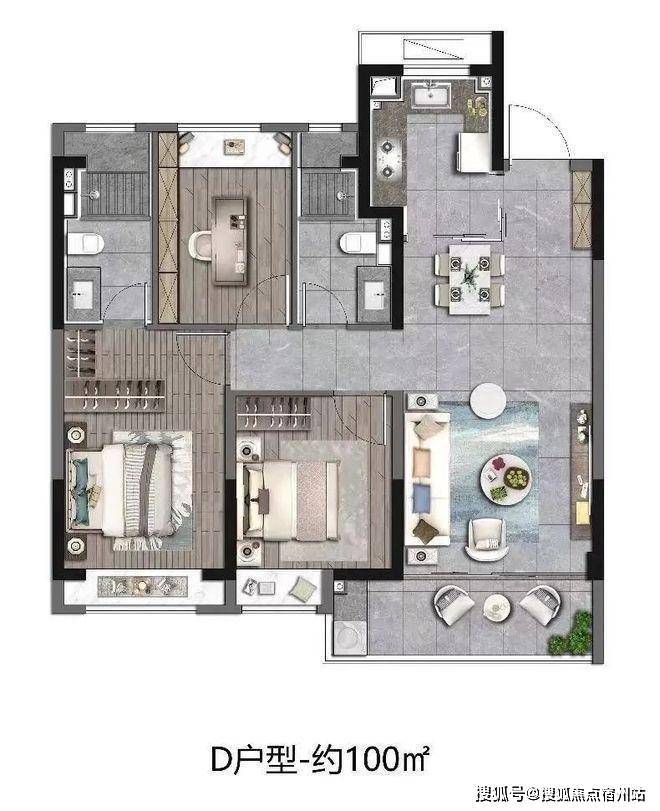 建筑面积约100㎡样板间实拍示意图