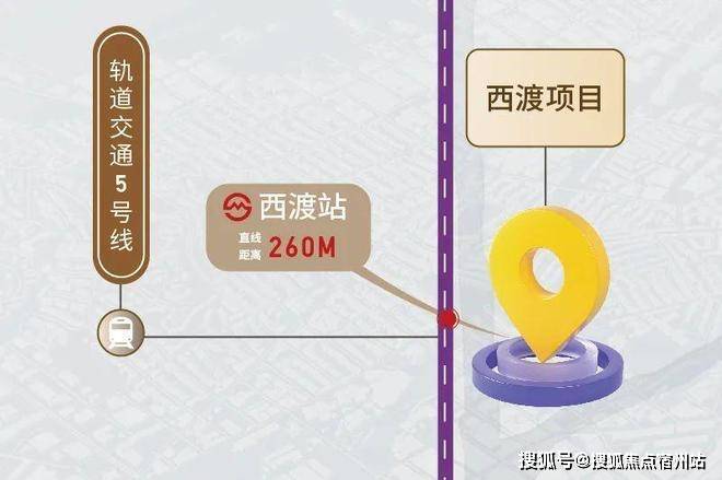 项目紧邻地铁5号线西渡站,直线距离约300米,步行可达.后期更有15号线西闸公路站(南延伸段规划站点).