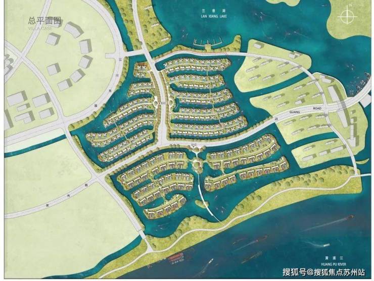 水系分布确保每家都能开游艇到兰香湖中心...太奢侈了!!