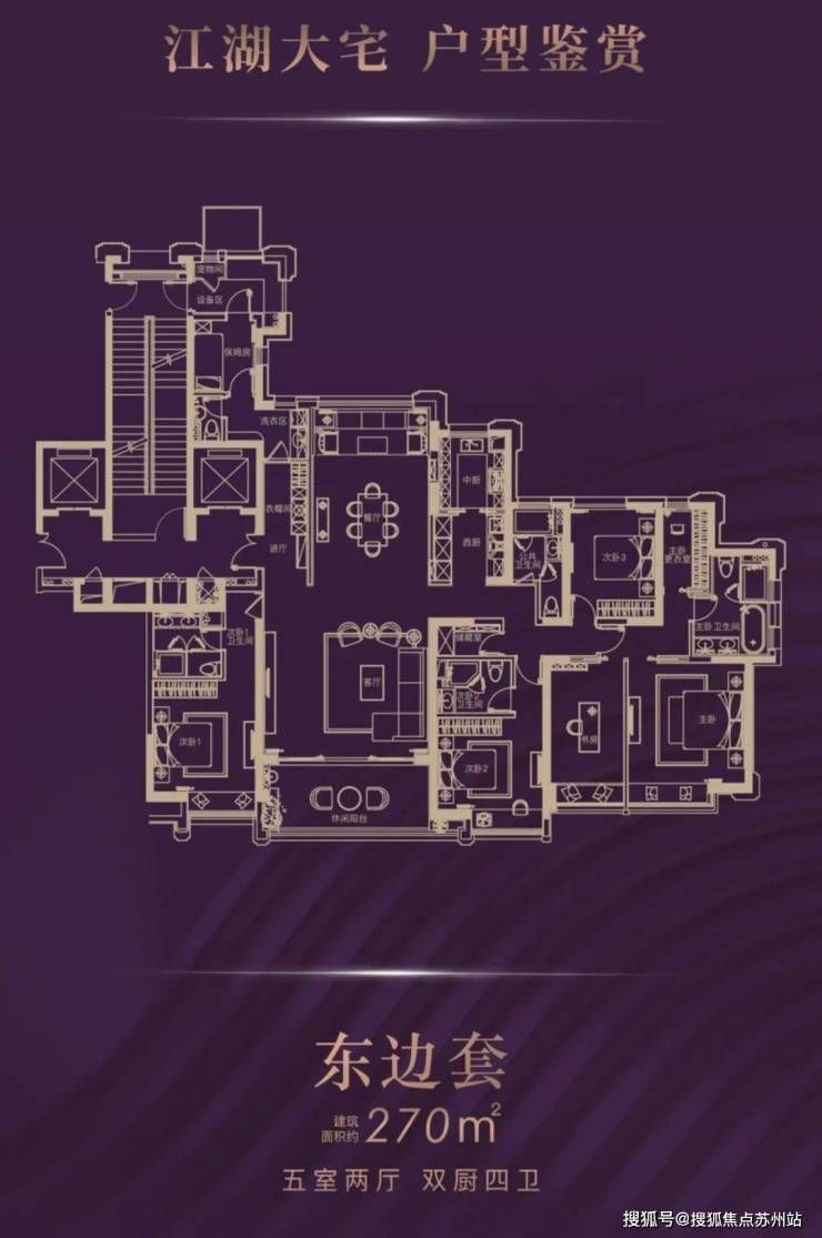 270平做了5室2厅4卫2厨,卧室基本都是带卫生间的套房、还配了一间保姆房。