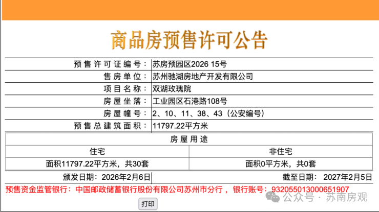 就在刚刚,苏州楼市传来重磅消息:占据双湖绝版地段的绿城玫瑰园二期,终于迎来最新一批房源预售证!