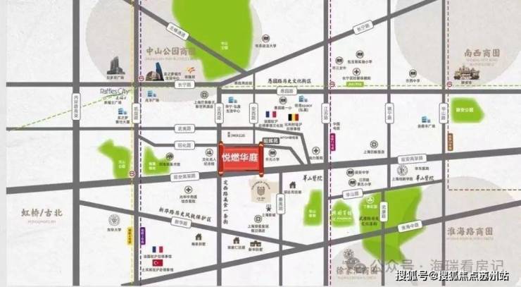 悦燃华庭位于上海长宁区安顺路83号。隶属长宁新华路板块,地处长宁、徐汇两区交界的位置。配套成熟、生活便利、公共交通四通八达,地理位置优越。项目步行500米即可到达淮海路,附近有1KM范围内有汇京国际广场、淮海坊等大型商业中心,完全可以满足业主平日吃喝玩乐一站式的休闲娱乐体验感与基本的日常生活所需。