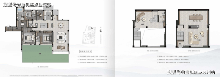 咬合式4层复式建筑,以公共区域与私人区域的完美结合,为家庭打造从容的生活方式。院子、复式双厅,可为不同年龄段的家庭成员提供生活公共区域,满足家庭成员生活需求;露台、地下室打造家庭主人私密会客、臻趣雅致的私人空间。