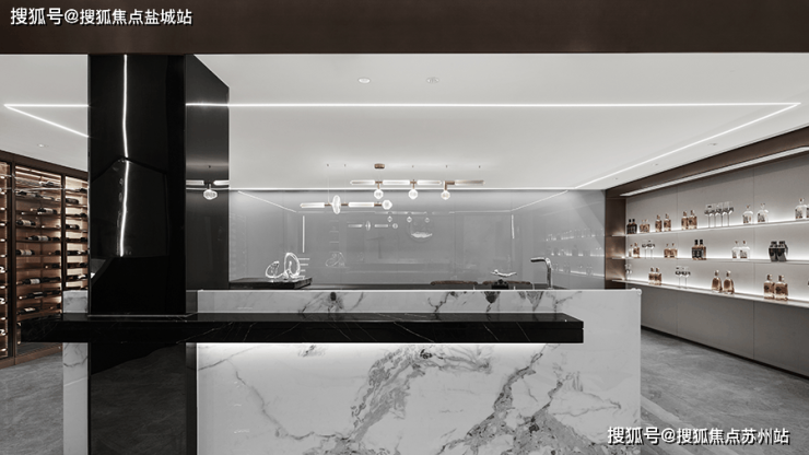 穿过岛台 另一侧是品酒室,大面积玻璃与石材细腻的纹路相结合,在起承转合间能够捕捉到,彼此细腻的纹理与形态,金属与皮质的加入加强了空间层次,沉浸酒香 闲适随性!透过视觉感官 激发内在能量,利用自然之韵,唤起人们对居住形态的迭代需求,德信浮山云湖印在沉稳中追逐未来,探索当代人居的更多可能!