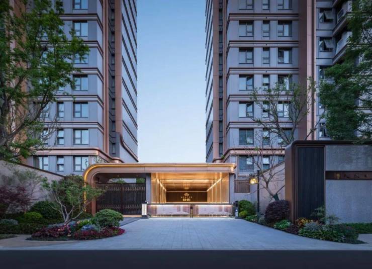 建筑与园林:采用新中式风格,外立面以“双叶绽放”设计,搭配三色铝板与玻璃幕墙,南向窗墙比约0.6,采光与视野俱佳。园林以“两院·八象·二十一境”为理念,打造诗意东方景观,楼间距约69米,户户有景。