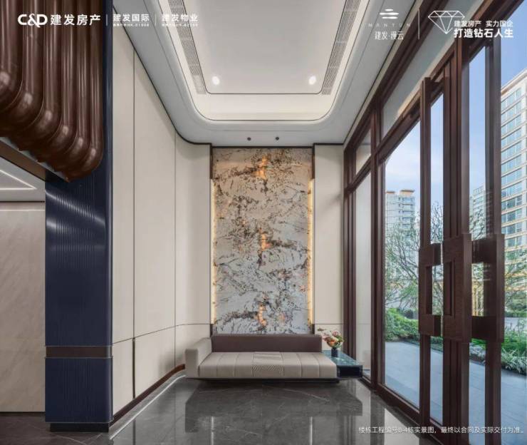 在公区方面,建发缦云的酒店式入户大堂,让业主在归家伊始,即感受到扑面而来的尊崇与排面。