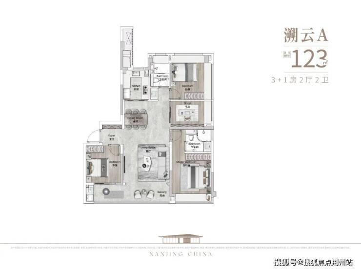项目打造建面约123-182㎡诗意东方低密大宅,以全系3+1房,南向奢阔阳台&宽境飘窗,南北通透、多面瞰景、极致采光,营造诗意生活情境,链接大家族温情。