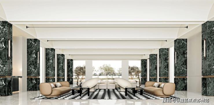 主入口的归家大堂内,连缀着优雅的古罗马拱门元素,让人不由想起意大利文化宫的FENDI全球总部。整个大堂以白色为基底,一扫传统新古典的沉闷。