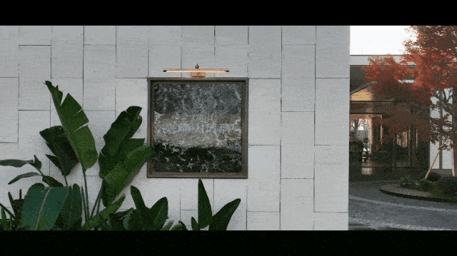 大门中央是全冠移栽的进口日本枫,树下镶嵌精致的绿植条石水景,整体充满了高奢度假酒店的氛围感。