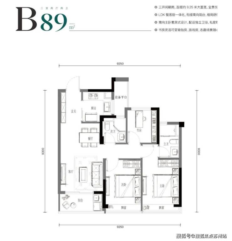 入门款:建面约89方三房两卫