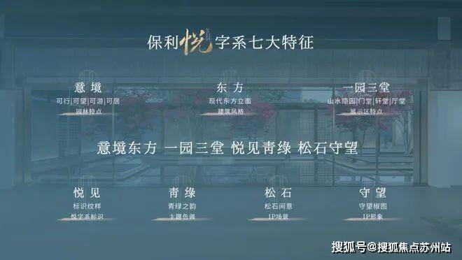 作为保利在上海首个悦字系产品,注重园林景观的打造与耗材重工、现代东方的气质、尽显奢、阔、贵。修筑东方意境住宅,借鉴上海百年张园的造景手法,景观上给人一种东方尊贵的仪式感,"一园三堂"的空间布局,尊贵归家体验引人入胜。