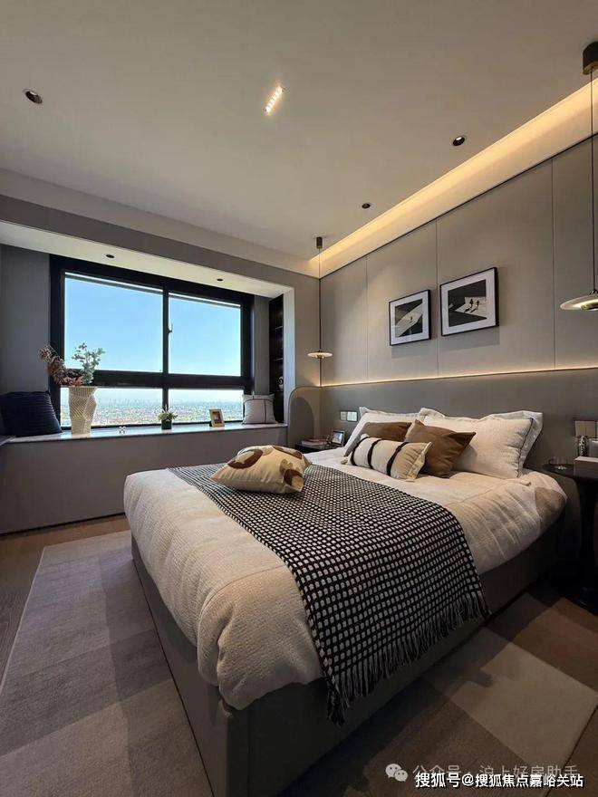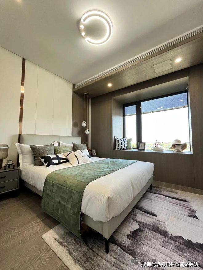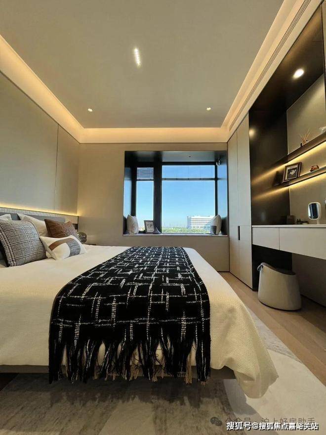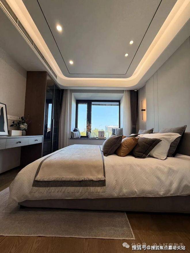 双套房设计,主卧带卫生间+衣帽间,次卧带衣帽间+飘窗,让两代家庭都能拥有自己的私密空间。