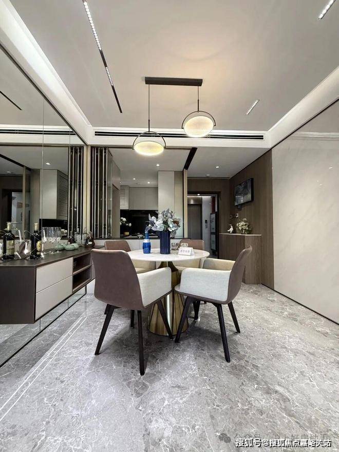 独立的入户玄关,出入皆有生活的仪式感,更方便做细致的收纳分区;客厅、餐厅相互独立,客厅南连宽景阳台,餐厅北连飘窗,让空间得以延展的同时,也让阳台的功能多样化;厨房就近连接餐厅,动线清晰,客餐厅通透明亮。