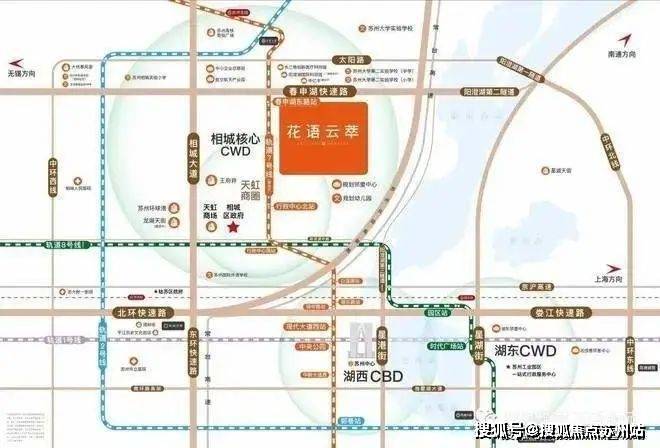 二高速:自驾5公里约10分钟可上G42沪宁高速、G15W常台高速。双高架:春申湖快速路,出门即上,可快速通道园区和新区;苏州北站高架路,自驾1km可转,北部到高铁新城、南部到姑苏和园区CBD。双地铁:轨交7号线,项目紧邻行政中心北站约100米,五站金鸡湖,预计2024年年底通;轨交8号线,行政中心南站约1km,预计2024年年底通车。三横三纵路网:【三横】春申湖东路、华元路、阳澄湖中路;【三纵】澄阳路、相城大道、524国道;