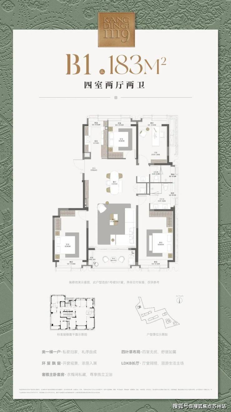 ▶建筑面积约177㎡四房户型,6重采光面,室室皆阳,是给与预算更高客户的又一全新选择。