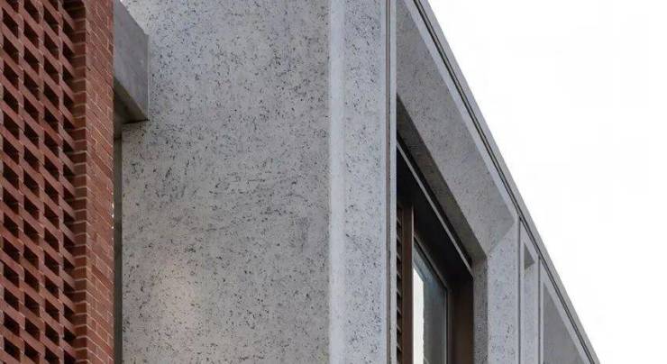 在合院的景墙,采用了独特的干挂技法。夏日里阳光的照射下,会显出独特的光影效果;到了雨季,雨水从一块块凸起砖处淅淅沥沥蹚下,更是充满了美感。
