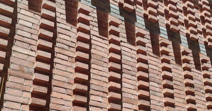 在砖的生产过程中,项目不计成本地增加了手工敲打环节,连接出大量带有圆润弧度的线条,结合六色混色砌筑手法,创造出丰富的墙面纹理,美感全面焕新,再一次著新百年外滩的美学叙事。