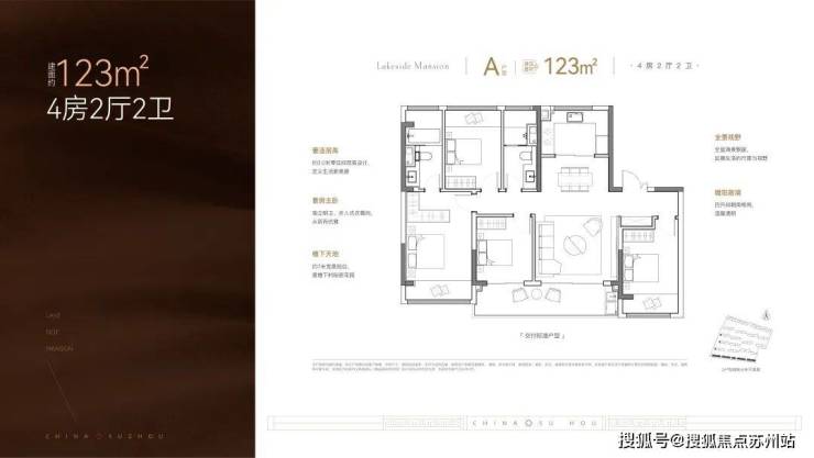 户型亮点: 270°超大转角观景阳台 主卧270°超大观景飘窗 中西厨岛台和专属家政间 双入户动线、室内小玄关、主卧小家化、多套间设计 IMAX豪华方厅+270°转角观湖阳台