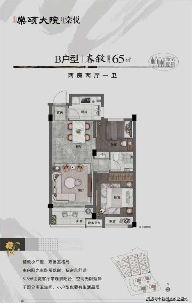 3.3米面宽客厅带观景阳台,空间无限延伸,干湿分离卫生间,小户型也要有生活品质