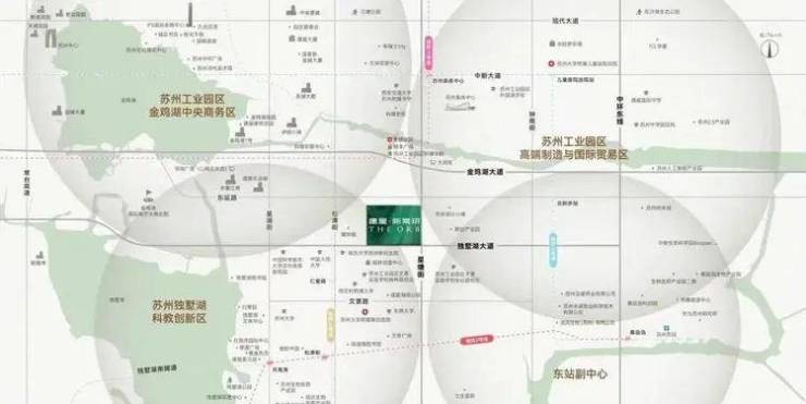 1. **地段与板块价值突出**:项目地处苏州工业园区湖东核心,是苏州产业、人才和城市资源的聚集地。周边被金鸡湖CBD、独墅湖科教创新区、在建的苏州东站枢纽等环绕,能直接享受成熟的城市红利和未来的发展增量,**地段稀缺性和价值支撑力强劲**。