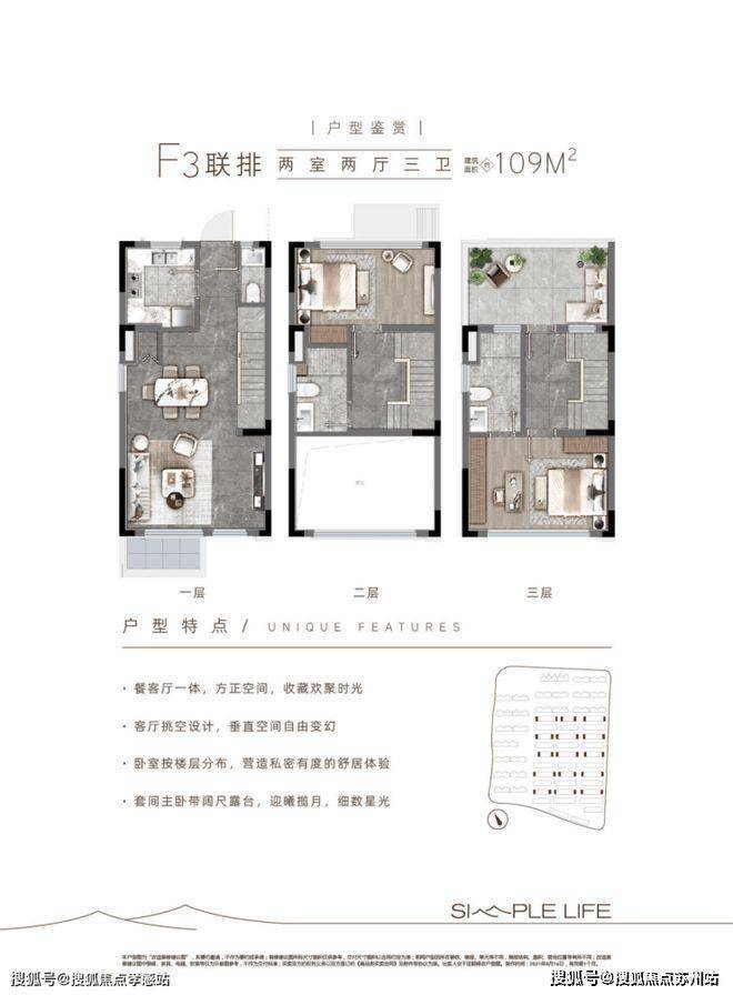 项目合计47幢楼,其中洋房12幢554套,联排33幢301套,项目整体分两批次推出,总计855套。采用人车分流,即保证社区整体设计的美观,又保证业主的安全性,车位有920个,做到1:1的比例。