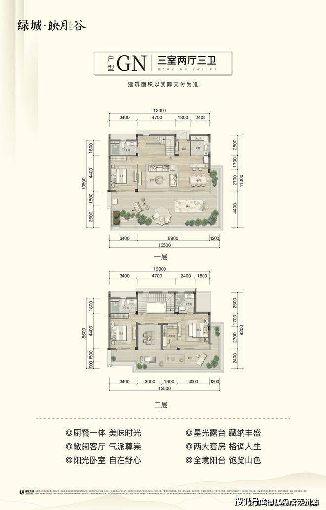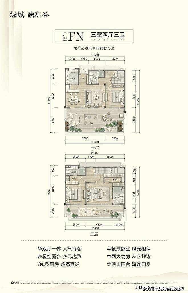开间:约10-14.8m南向大开间,巧妙借景,实现自然向室内延伸