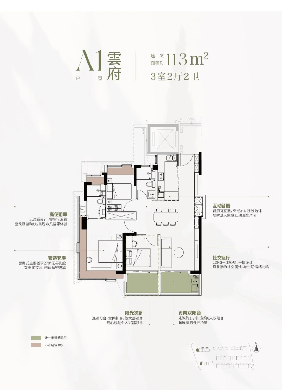 建面约113㎡3房,约170㎡东边套