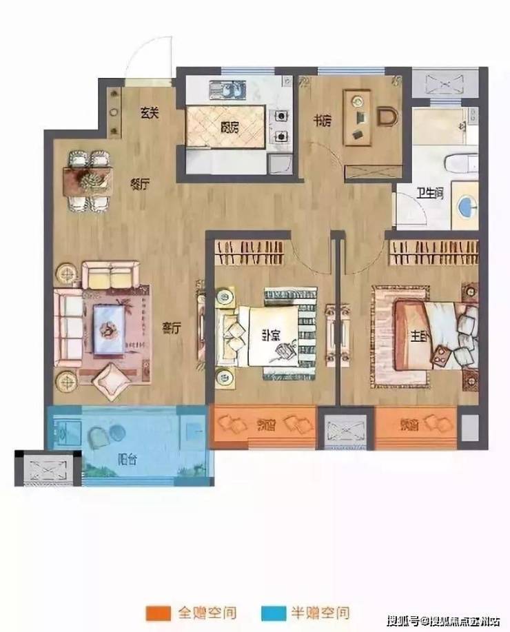 B户型93㎡三房两厅一卫公元壹号名邸/「橡树园」售楼处电话地址咨询:400-8123-664【营销中心热线】