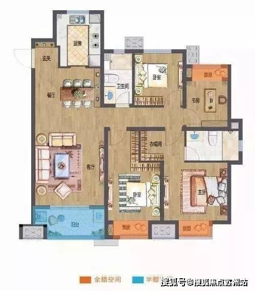 H户型127㎡四房两厅两卫公元壹号名邸/「橡树园」售楼处电话地址咨询:400-8123-664【营销中心热线】