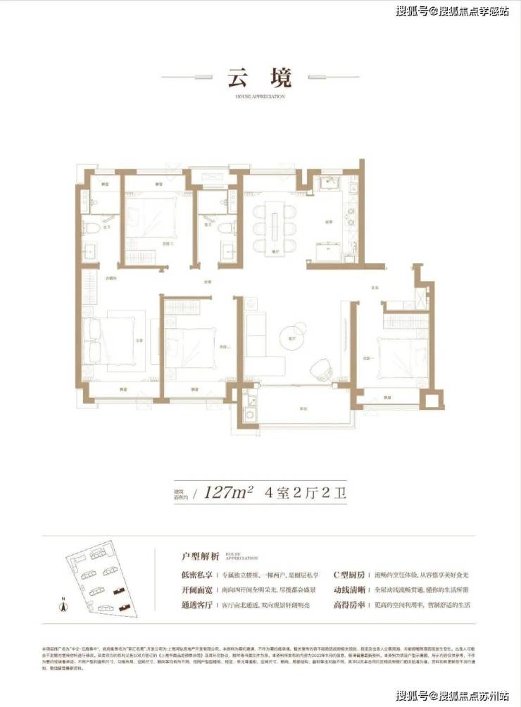 建面约127㎡4房毛坯产品,上海建面约130㎡以下的户型如今很少做4房,因为得房率不高、实际使用面积不大,做4房会非常局促。但项目的得房率高达82%,所以不仅能做4房,并且4个房间的尺度感都是非常不错的,更适合一步到位的改善家庭。