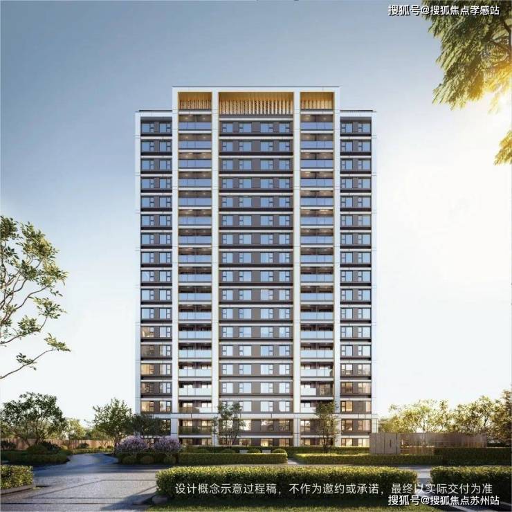 项目外立面采用现代简约建筑风格,点缀金色的框线,极简优雅但又不失格调,符合小区所在莘庄商务区稀缺核心住宅的定位。