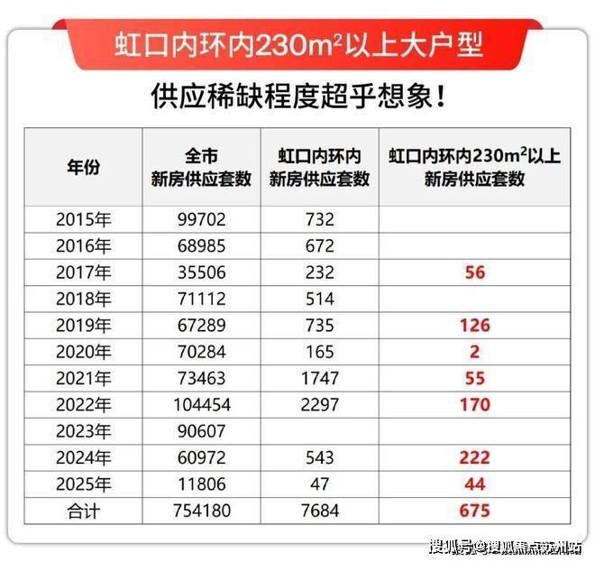 而虹口内环内建面约230㎡以上的改善户型供应套数要再缩减10倍,只有675套,占比总池子约0.1%。堪称:10年难遇,千里挑一!