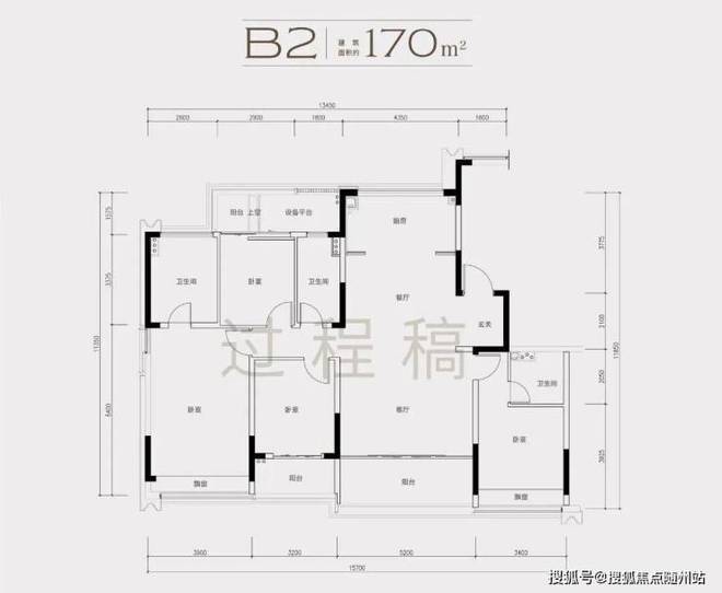 170方户型,是南厅139方户型的放大款,次卧多了一个套房空间。