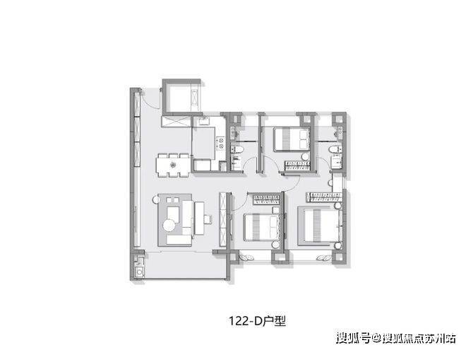 户型方面,主力产品建面约94-122㎡3-3+1房。