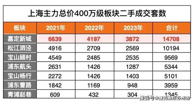 据数据统计,2022年嘉定新城有466套新房成交价在400万级,但2023年就只有204套新房总价在400万级。