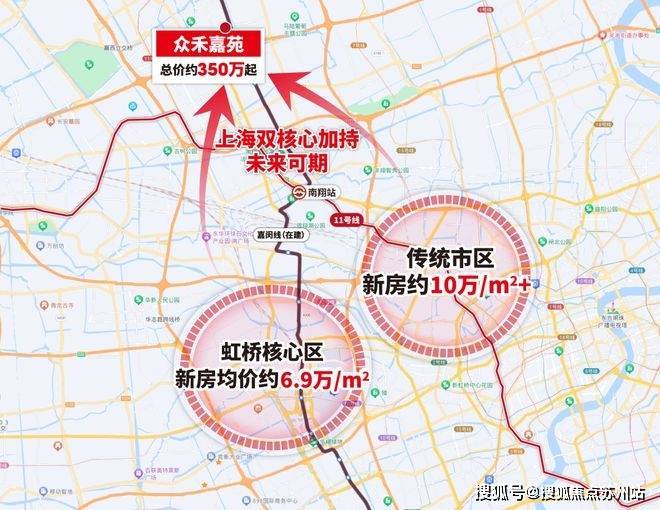 同时,嘉闵线目前沿线新盘均价在6-8万/㎡,相比之下总价约350万起的众禾嘉苑洼地属性明显,未来必然能持续的从虹桥、市区两大中心导入人口,经久不衰!