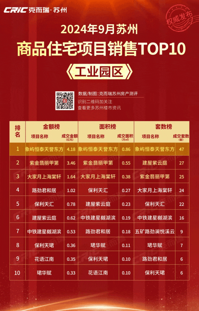多个项目拿下园区月度商品住宅项目销售金额、面积、套数榜榜首。