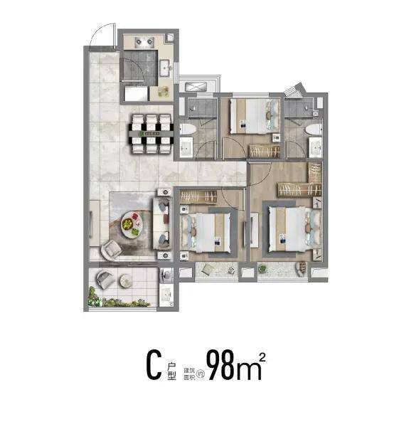 本次大名城·映辰将推出建面约98-124㎡3-4房.其中,300万级的三房是本次最具吸引力的产品类型.