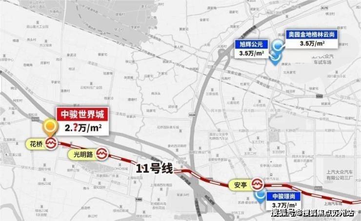 从地图上可以看到,花桥和上海嘉定一衣带水,住在中骏世界城和安亭几乎没有本质区别!而后者的新房即使离地铁较远,也要卖到3.5万/㎡,相比之下,限价背景下的花桥新房很可能只有2字头。