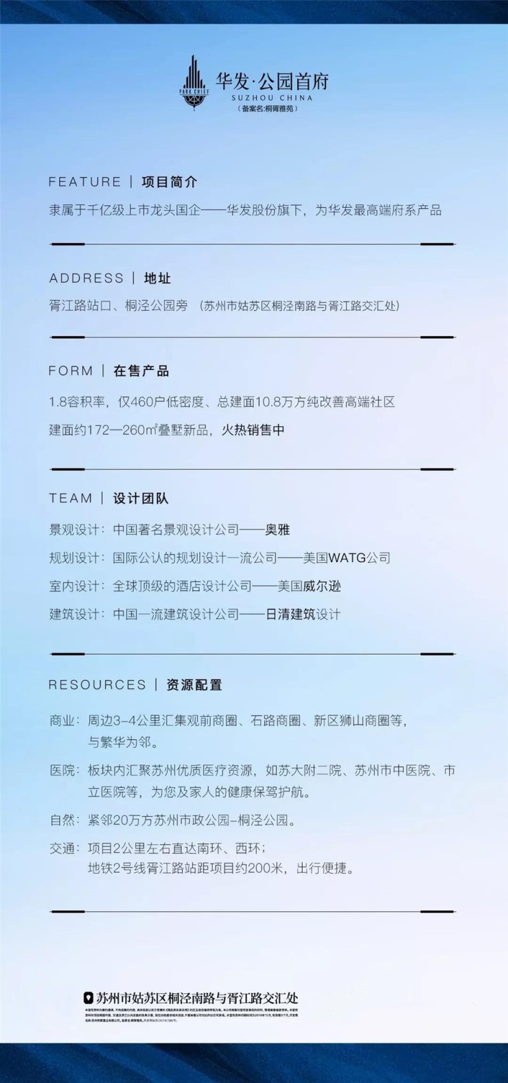 作为华发在资源稀缺的苏州古城区重点打造的排名前列个高端府系作品,华发·公园首府以城芯之上的公园墅居生活,敬献当代姑苏品质人生。