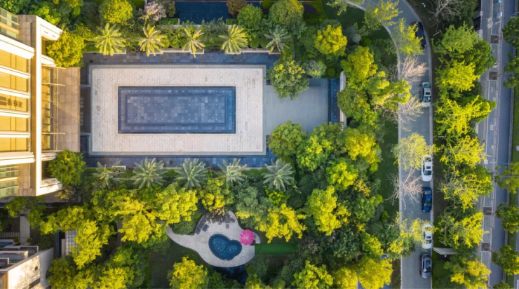 △ 华发·公园首府示范区实景图从大堂入园开始,即呈现东南亚风格园林景观,四季之景融园于林。春赏花夏赏叶秋观果冬观翠,复合栽种植物,园林立体降噪。同时设立六大泛会所空间,以会客、青年交流、成人健身、老年交流、儿童游乐、书吧等形式,打造全生命周期服务。