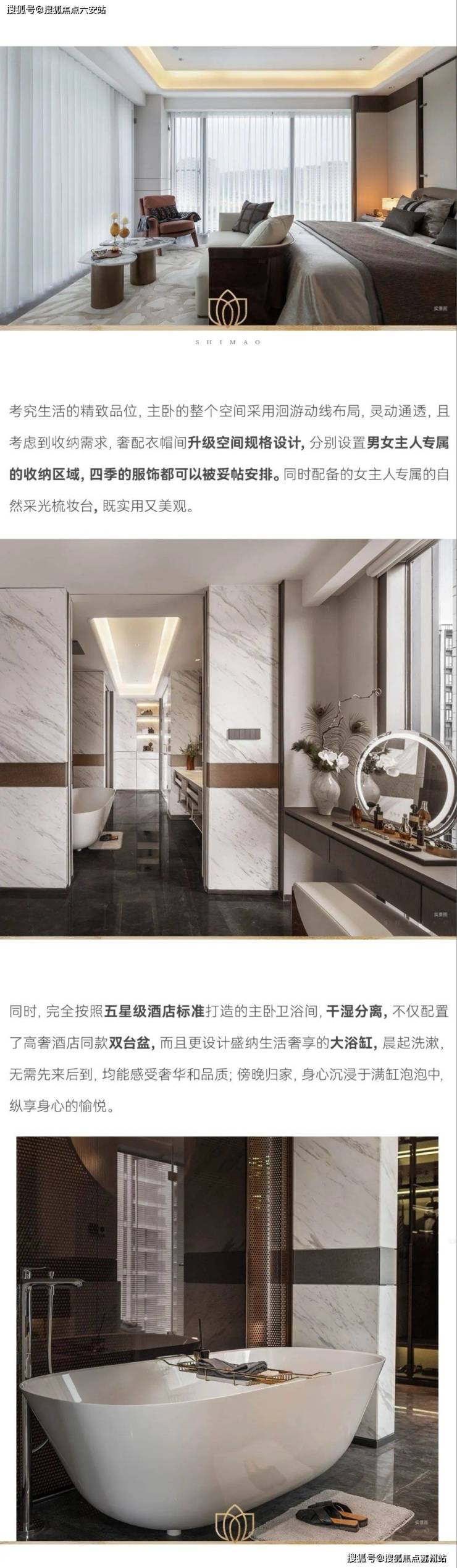 - **340㎡户型**:5房4卫,主卧套房配备全景衣帽间与三分离卫浴,客餐厅一体空间超75㎡。