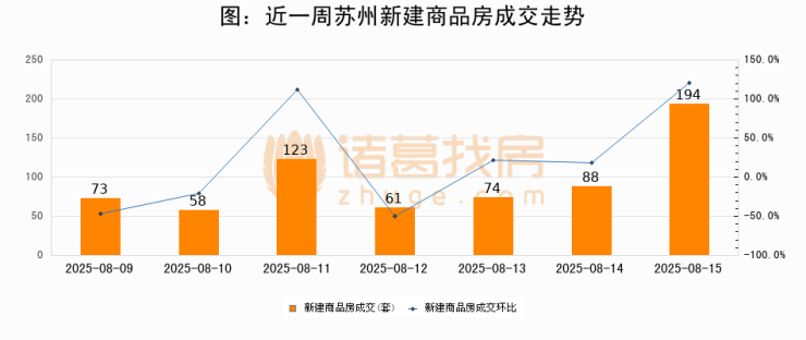 【苏州成交日报】08月15日新房成交194套、二手房271套;涨价房源16套