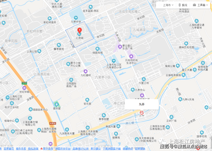 距轨交9号线九亭站直线距离约1.8公里