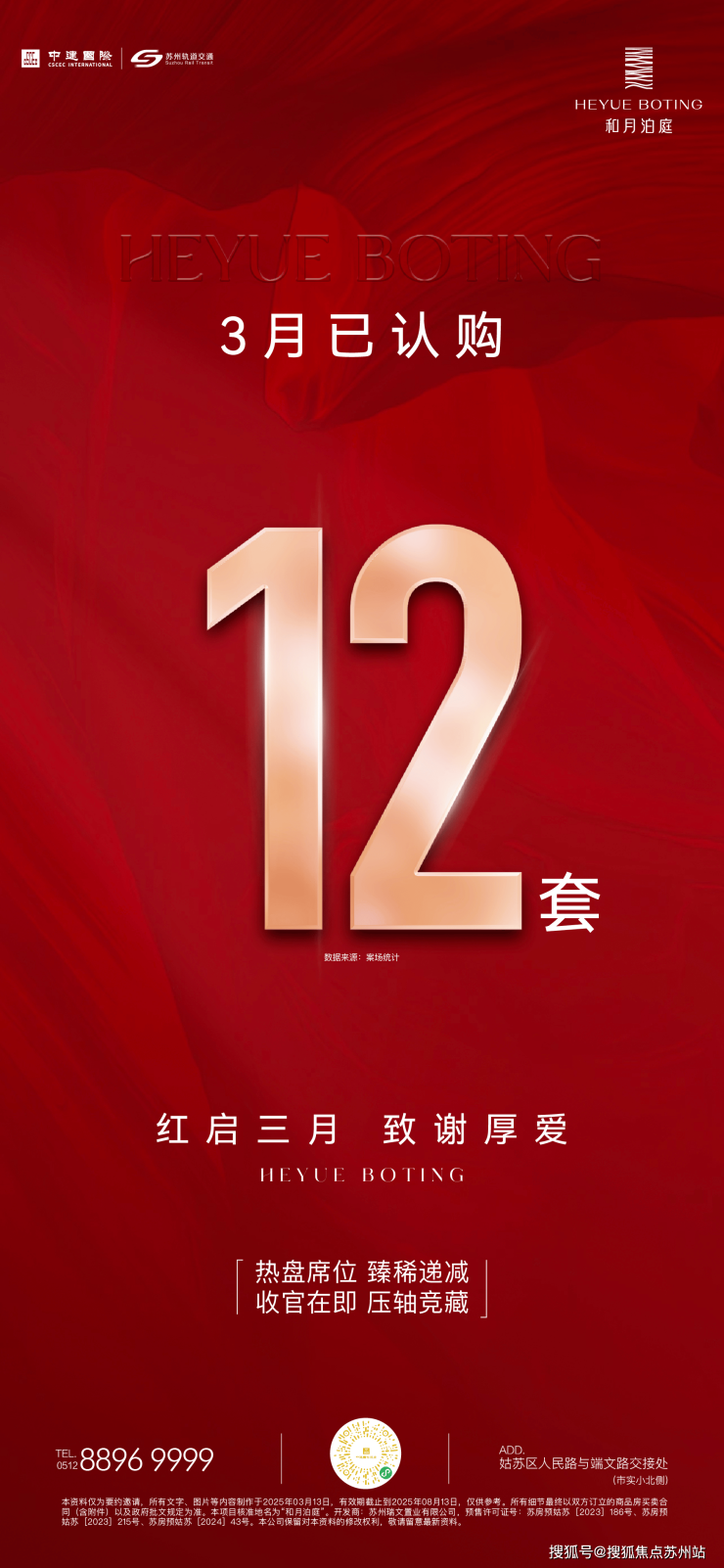 在姑苏,土地是凝固的历史,而选择一处与城市共生长的居所,是对未来最笃定的投资。和月泊庭,以12套热销点燃三月,更以所剩无几的席位,静候最后一批读懂价值的智者。