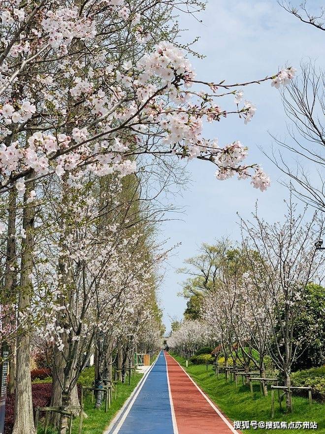 滨河公园内已建有900米樱花漫步道,规划将会建成贯通整个北河岸的2.2公里漫步/跑道,漫步道两侧种满了多季樱花(共9种),其中从日本移植了414棵名贵樱花品种。