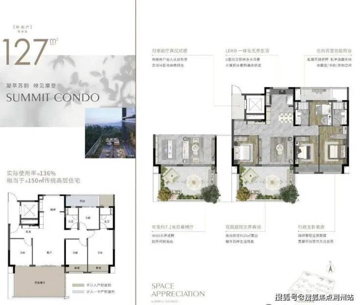 🥇建面约143㎡:欢聚无界约29㎡花园露台实际使用面积相当于传统住宅185㎡传统高层住宅