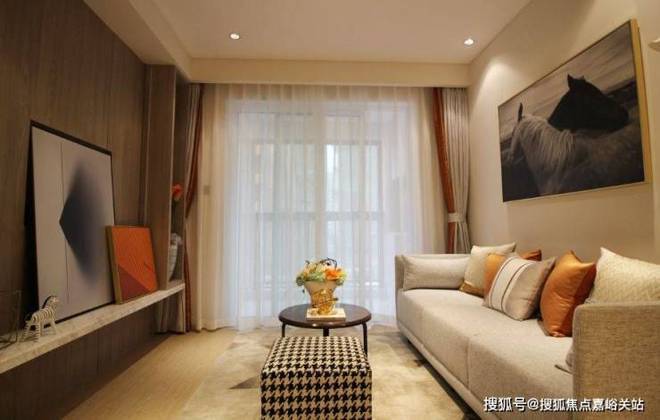 客厅面积约11.38㎡米,附带外凸式南阳台,入户门可设鞋柜,卫生间干湿分离。