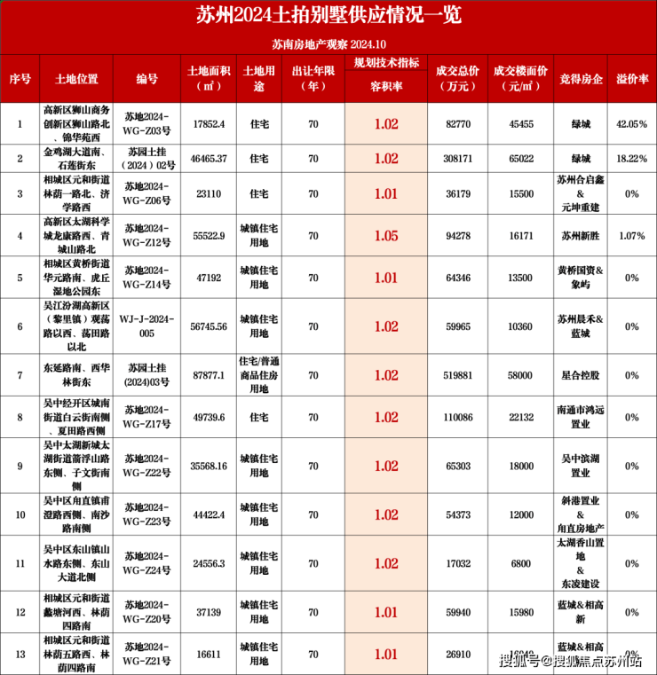 限墅令放开后,苏州土拍新增的别墅用地,容积率最低也只能做到1.0左右。园区双湖新出让的两宗宅地,绿城玫瑰园与星合控股地块,容积率是1.02。